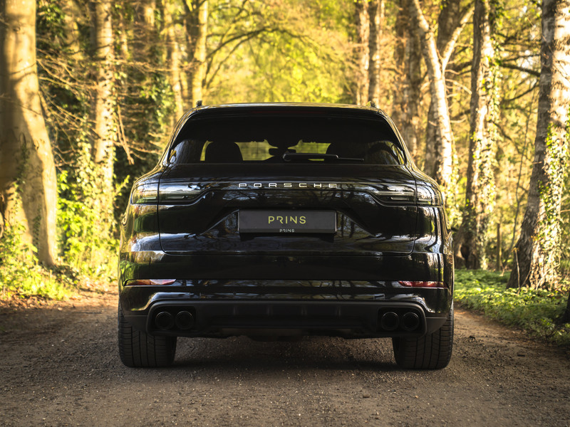 Bij de introductie van de Cayenne vroeg de wereld zich hardop af of sportwagenbouwer Porsche helemaal de weg kwijt was. Diezelfde wereld viel echter als een blok voor de mogelijkheid om elke dag in een performance-gedreven auto te kunnen sturen, inclusief het comfort van een volwaardige familiewagen. Inmiddels zijn we een paar generaties verder en kunnen we zeggen dat de Porsche Cayenne een doorslaand succes is gebleken. De evolutie van de SUV is duidelijk zichtbaar, maar hetzelfde geldt voor de 911-invloeden waarop de Cayenne traditiegetrouw leunt. De karakteristieke koplampen zijn in dit specifieke geval van het type LED-Matrix en beschikken over Porsche Dynamic Light System Plus voor een optimale, kristalheldere lichtbundel onder alle omstandigheden. Medeweggebruikers verblinden doet het systeem niet. En ook qua kleurstelling heeft uw voorganger het bescheiden gehouden: Diepzwart metallic gecombineerd met zwart gelakte exterieurdetails zoals de raamlijsten, dakrails en grille. Zwart zijn tevens de sporteindstukken van het uitlaatsysteem. Daarnaast doen Privacy Glass en het donkere glas voor de LED-achterlichten een duit in de mysterieuze uitstraling van deze Cayenne Turbo. Tot slot staat de Porsche op 21 inch grote Cayenne Exclusive Design velgen inclusief donkere inlay en erachter gele remklauwen die duiden op de indrukwekkende stopkrachten van de keramische remmerij.