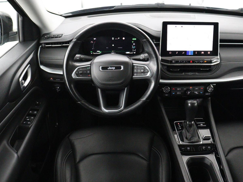 Voor het overzicht tijdens iedere rit is deze Jeep Compass voorzien van een gemakkelijk afleesbaar digitaal dashboard. De kracht van de 360 graden camera op deze auto resulteert in optimale zichtbaarheid en veiligheid. Adaptive cruise control houdt de ingestelde snelheid vast en houdt automatisch afstand tot uw voorligger. De meest gebruikte voertuigfuncties laten zich met behulp van uw stem bedienen. Uw smartphone wordt een dashboard, met alle functies in beeld. Dankzij Connected Services en de speciale app. Ook premium audiosysteem, full map navigatiesysteem, automatische airconditioning, draadloos opladen, DAB ontvangst en regensensor zijn aan boord.