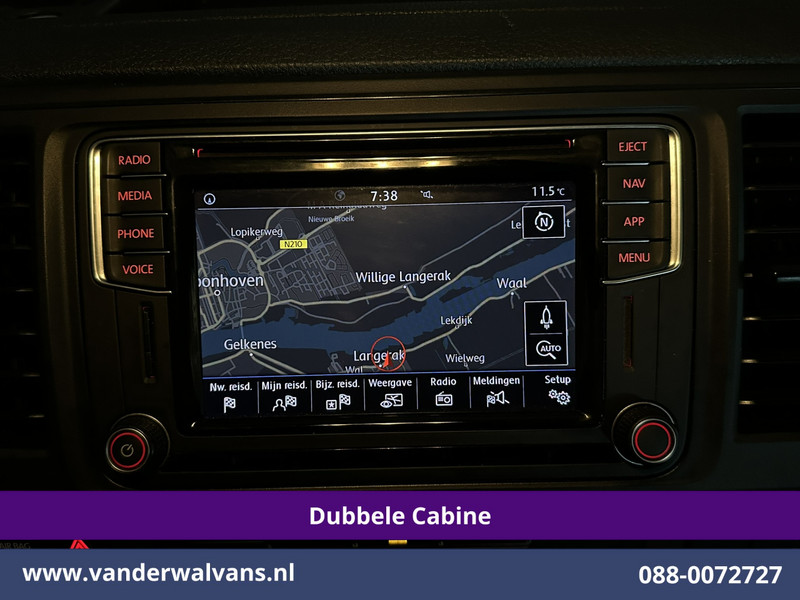 150pk sterke Volkswagen Transporter L2H1 Dubbel cabine Euro6 met airconditioning, 5 zitplaatsen en navigatie. Deze dealer onderhouden Transporter is voorzien van Apple Carplay, Android Auto, cruisecontrol, 2500kg trekhaak, parkeersensoren, achterklep en bluetooth telefoonvoorbereiding.
