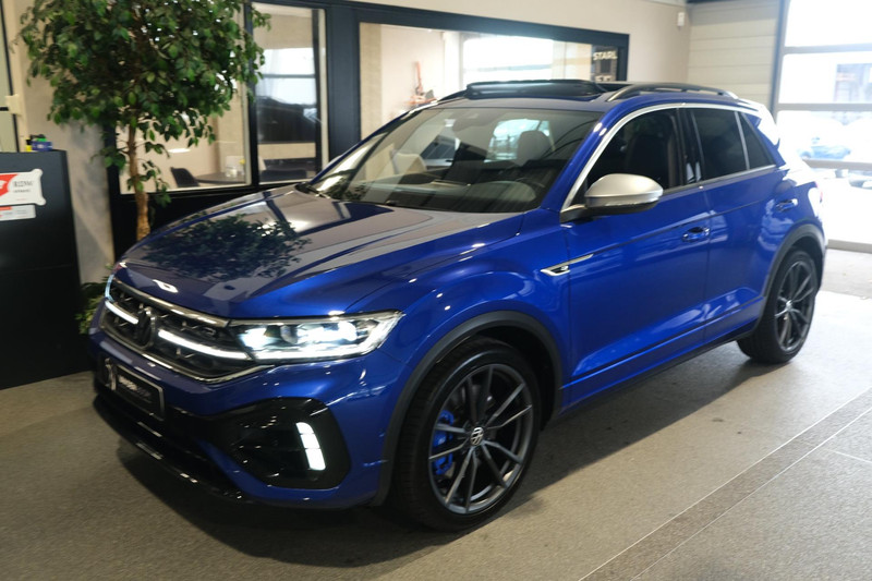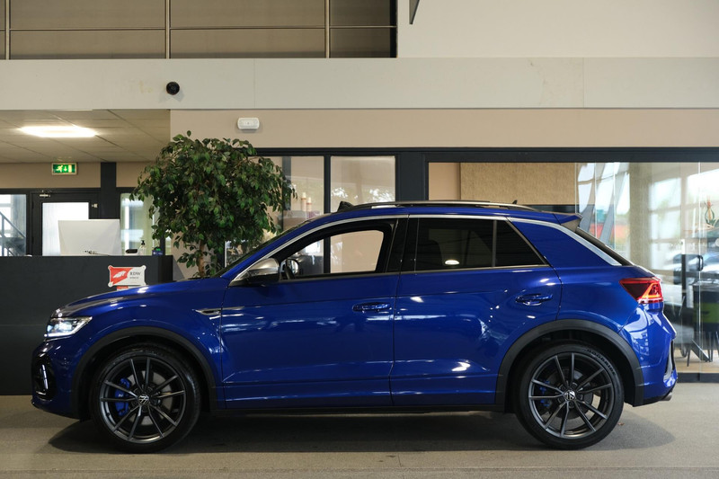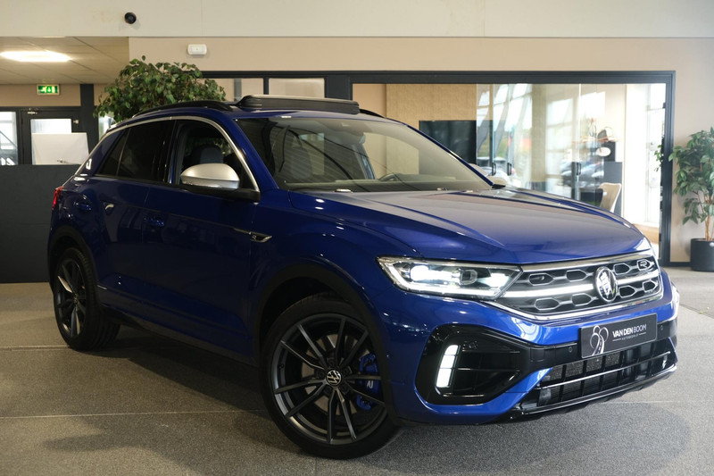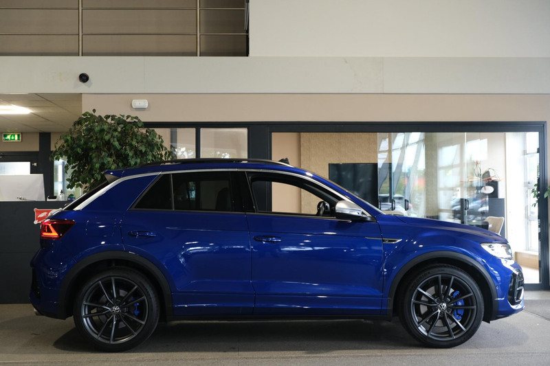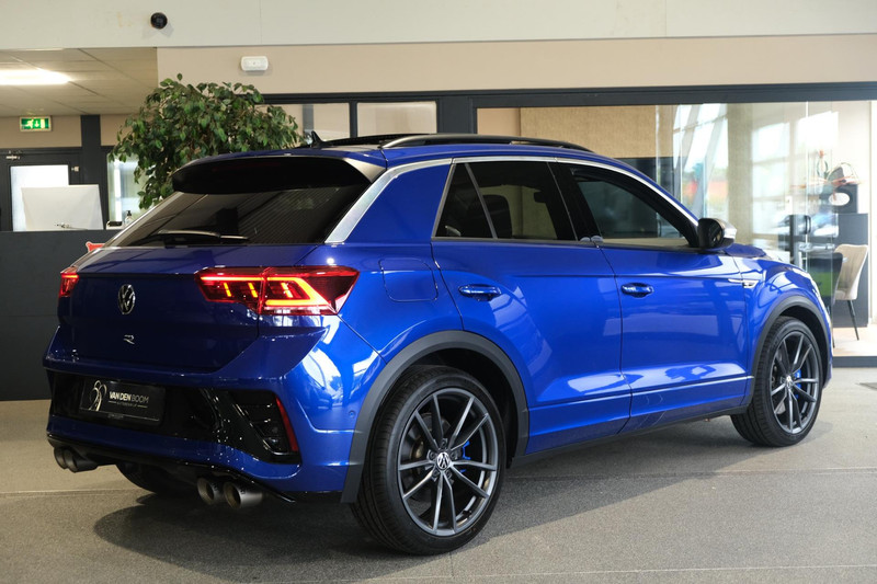 Volkswagen T-Roc 2.0TSI 4Motion R 300PK Facelift Bouwjaar 06/2022 "Lapiz Blue Metallic" Akrapovic Uitlaat Panorama Dak Trekhaak Parkeercamera Navigatiesysteem IQ Light Led Elektrische Achterklep Stoelverwarming