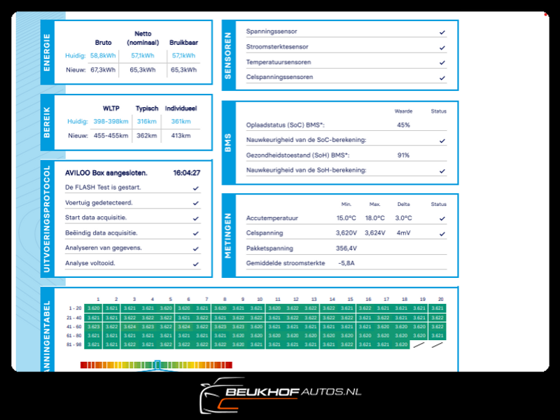 Accu: 64 kWh, Conditie: 87%