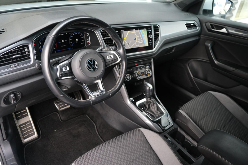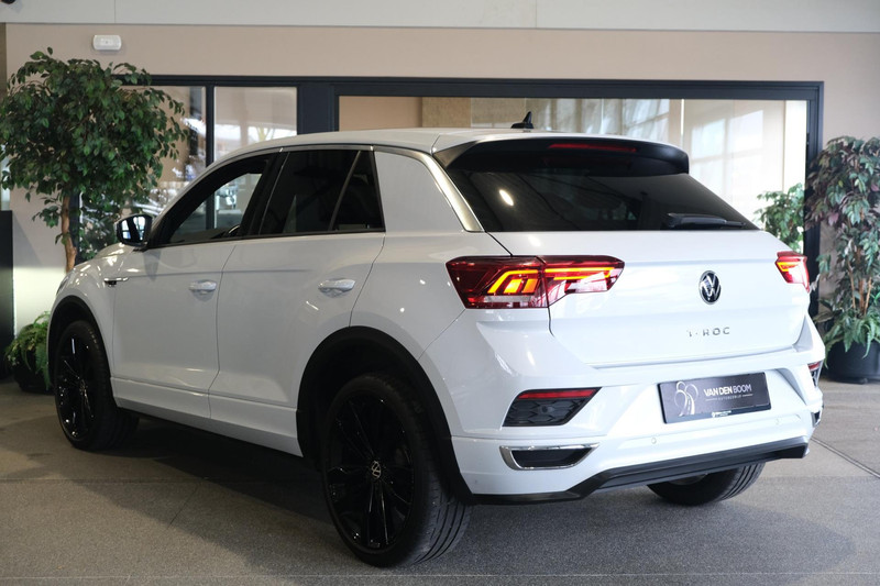 Volkswagen T-Roc 1.5TSI 150PK R-line DSG Automaat Bouwjaar 09/2022 "White Silver Metallic" R-line Exterieur R-line Interieur Led Verlichting Black Style Pakket Virtual Cockpit Parkeercamera Trekhaak Adaptieve Cruise Control Navigatiesysteem Elektrische Achterklep