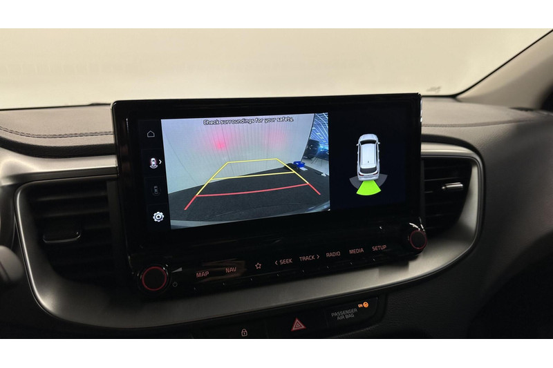 Bij het inparkeren laat de achteruitrijcamera precies zien hoeveel meter... decimeter... centimeter ruimte er nog is! De auto's van vandaag rijden niet alleen subliem, maar luisteren ook goed. Via een speciale app kunt u overal diverse functies controleren en de status van de auto inzien. Een optie die de veiligheid verhoogt, is de bediening vanaf het stuur van het audiosysteem (met DAB-radio!) en het full map navigatiesysteem. Als u wilt kunt u beiden zelfs met uw stem bedienen. Nooit meer te warm of te koud. De electronic climate control zorgt altijd voor de temperatuur die u kiest. Om de veiligheid onderweg te verhogen, heeft deze Kia zowel een automatisch inschakelbare verlichting als een regensensor aan boord, zodat hij zelf de verlichting en de ruitenwissers kan inschakelen. Ook is de Kia uitgerust met: automatisch dimmende binnenspiegel, lederen stuur, isofix-aansluiting, centrale deurvergrendeling met afstandsbediening en lederen versnellingspook.