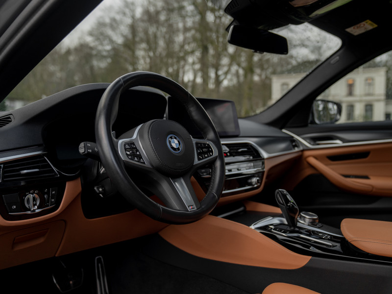 Doorgaans worden de meeste keurige middenklasse limousines doordeweeks ingezet om representatief mee bij klanten te komen voorrijden. Om vervolgens in de weekenden aan de kant te worden gezet voor ander ‘speelgoed’. Hoe anders gaan BMW 530i xDrive eigenaren te werk: 7 dagen per week rijden ze met een brede grijns in exact dezelfde auto. Vooral in deze über-fraai aangeklede High Executive M Sport trim heeft de 245 pk sterke 5 Serie het woord ‘rijplezier’ zo ongeveer uitgevonden. De stijlvolle 4-deurs combineert namelijk het beste van meerdere werelden door diverse BMW M-tools toe te voegen, zonder de liefhebber van comfort daar gelijk mee af te straffen. Naast een M-pakket + dito sportstuur, zijn aanwezig: super chic cognac lederen interieurbekleding, BMW Laserlicht, Driving Assistant Professional, stoelverwarming, Blow-By verwarmer, BMW Live Cockpit Professional, een Head-up Display, Adaptive Cruise Control, elektrisch schuif-/kanteldak en Hi-Fi audiospeakers. Ook de speciale Berninagrau Bernsteineffekt metallic kleurstelling aan de buitenkant is iets om vrolijk van te worden. En dat voor een grijstint! Dit zit ‘m behalve in de kleurnuance, óók in de combinatie met het hoogglans Shadow Line pakket: inclusief diverse exterieurdetails zoals velgen, grille, luchtgeleiders, bumper inserts, raamlijsten en uitlaateindstukken afgewerkt in contrasterend zwart. Verder laat onze vierwielaangedreven BMW 530i xDrive zijn spierballen zien aan de hand van opwindende prestaties: accelereren van 0 naar 100 km/h kan binnen 6,3 seconden, terwijl de topsnelheid van 250 km/h van deze mild-hybride aanzienlijk hoger is dan die van de PHEV-versies. Baas boven baas. Zo ziet een BMW-rijder dat graag!