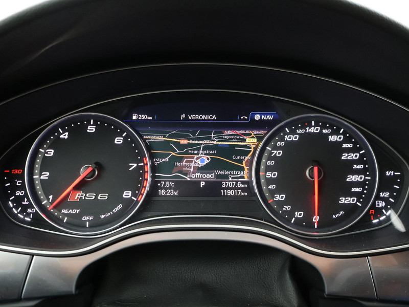 Audi RS6 4.0 TFSI V8 Bi-Turbo Performance met 605 PK vermogen en Quattro vierwielaandrijving, Audi Ceramic Brakes dus Keramische remmen, Audi Exlusive interieur met exclusive bi-color leder interieur + stoelen + middentunnel leder, Bang & Olufsen High End audio, Carbon interieur + exterieur styling, Carbon diffuser achterbumper, Carbon dashboard inleg, Carbon middentunnel, Privacy glass, 360 graden rondomzicht camera, Cruise control, 4-zone climate control, Zwarte alcantara hemelbekleding, LED koplampen, LED achterlichten, Elektrische achterklep, Keyless-entry en keyless-drive, Elektrische stoelverstelling met geheugen, Zwarte grille en logo's rondom, Achterspoiler, in 09-2025 bij 113.999 km nog onderhoud gehad.
