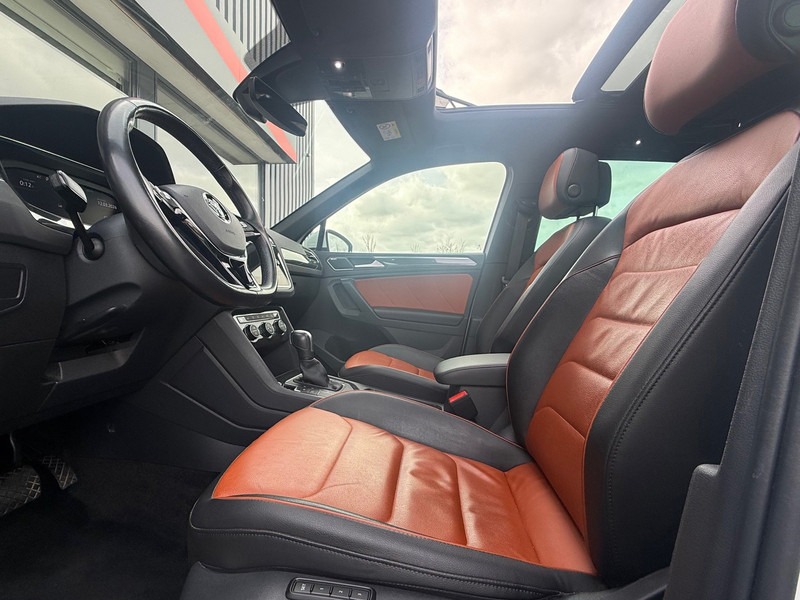Met zijn ruimte en zijn prestaties is dit de auto die bij u past. Het interieur heeft een sportieve en hightech ambiance dankzij de R-Line styling. Een belangrijke eigenschap van iedere Volkswagen is zijn duurzaamheid. Dat ziet u ook aan deze Tiguan. De aandrijving van deze Volkswagen wordt verzorgd door een viercilinder motor en een automatische transmissie. Zonder overdrijven een uitvoering met luxe en gemak: het elektrisch bediende glazen panorama dak, de elektrisch bedienbare achterklep en een mooi lederen interieur. Neem plaats op de comfortabele stoelen. Dankzij de elektrische bediening en het geheugen is het eenvoudig om hierin de beste zitpositie te vinden. Ook LED koplampen, dakspoiler, extra getint glas, in delen neerklapbare achterbank, LED-achterlichten en verwarmde ruitensproeiers horen tot de voorzieningen op deze auto.