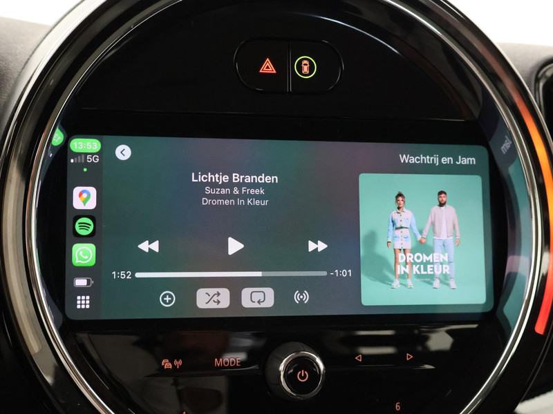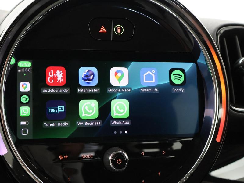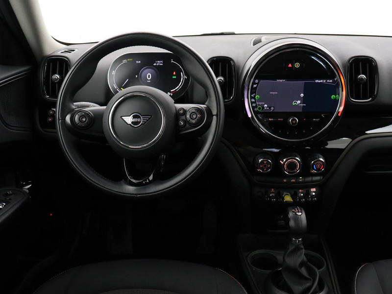 Plug-in hybrid Countryman Cooper S E 220 PK All4 vierwielaandrijving automaat in de topkleur Moonwalk Grey metallic, Full LED koplampen, Union Jack LED achterlichten (Britse vlag), Navigatie breedbeeld MINI + Apple Carplay / Android Auto appstreaming Google Maps, Flitsmeister, Spotify, Whatsapp etc, LED Mistlampen, Leder sportstuur, DAB+ Digitale radio, Bluetooth met audiostreaming, Onderhoud bijgehouden tot en met 02-2025.