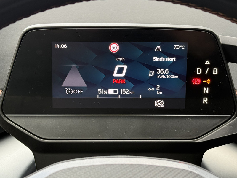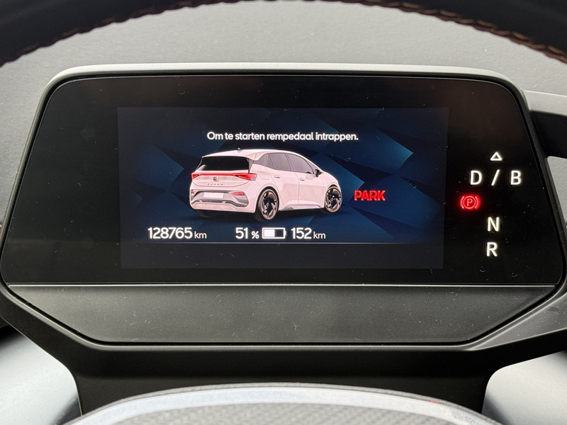 Uw rit wordt comfortabel en veilig gemaakt door het digitale dashboard dat alles projecteert wat u wenst in de digitale wereld van mobiliteit. De achteruitrijcamera maakt inparkeren gemakkelijker dan ooit. Adaptive cruise control houdt de ingestelde snelheid vast en houdt afstand tot het voertuig voor u. Deze CUPRA Born is voorzien van remote services. Via uw smartphone bedient u diverse functies ook op afstand en krijgt u informatie over de status van uw auto. Gemakkelijk en veilig is de spraakbediening voor het audio-installatiesysteem en het navigatiesysteem. Daarbij kunt u deze ook bedienen met de knoppen op het stuur. De audio-kwaliteit is geweldig, dankzij de DAB-ontvangst. De uitrusting van deze CUPRA is met automatische airconditioning, draadloos opladen, regensensor, keyless entry, automatisch dimmende binnenspiegel en isofix-aansluiting behoorlijk compleet.