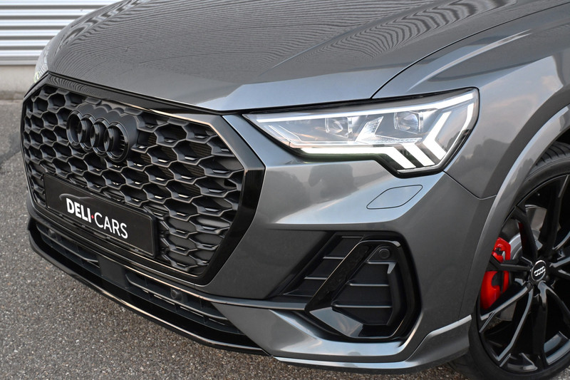 De strak samen gestelde Audi Q3 sportback is voorzien van de populaire kleur daytona grijs, wat de auto extra laat spreken zijn de zwarte extrieur delen en de 21 inch lichtmetalen velgen.
