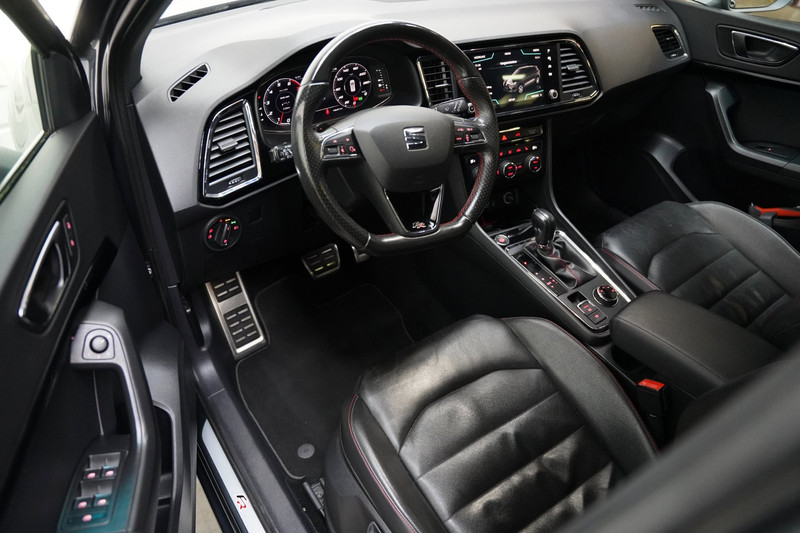 Deze auto nodigt u uit om plaats te nemen achter het sportstuur en onmiddellijk de weg op te gaan. De aandrijving van deze Seat wordt verzorgd door een viercilinder motor en een automatische transmissie. Fraai hoor, zo'n lederen interieur. En door de gemakkelijk elektrisch bedienbare achterklep bent u snel overtuigd van deze auto. Tijdens koude winterdagen verjaagt uw stoelverwarming de kou en maakt het rijden heerlijk comfortabel. Bij de uitrusting van deze auto horen onder meer 18 inch lichtmetalen velgen, LED koplampen, halflederen bekleding, extra getint glas, in delen neerklapbare achterbank en LED-achterlichten.