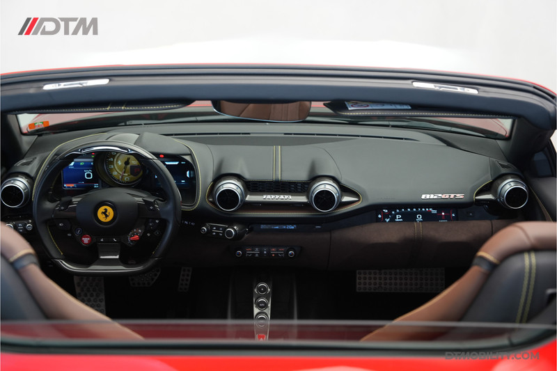 De lakkleur Rosso Magma is een speciale vierlaags lak die in de zon een diepte en glans krijgt die met niets te vergelijken is. Het interieur is een gedurfde, maar uiterst smaakvolle combinatie van Cioccolato leder en alcantara, afgewerkt met contrasterende Giallo (gele) stiksels en geborduurde Cavallino's in de hoofdsteunen.