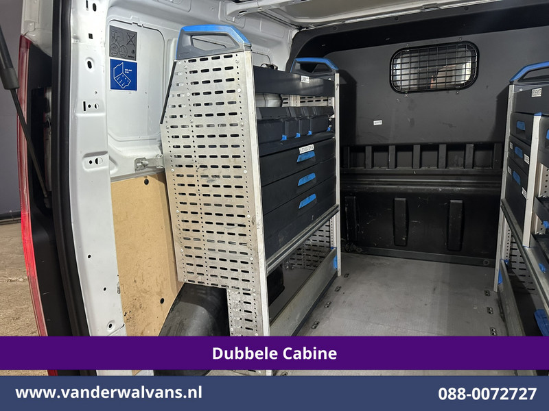 131pk sterke Ford Transit Custom L2H1 Euro6 dubbel cabine met airconditioning, 5 zitplaatsen en inrichting. Dealer onderhouden en tevens voorzien van camera, cruisecontrol, LED, parkeersensoren, stoelverwarming, achterklep, dakdragers en bluetooth telefoonvoorbereiding.