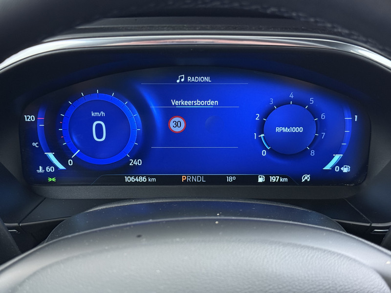 Het digitale dashboard is een perfecte bijrijder. Alles benodigde informatie is permanent zichtbaar of opvraagbaar. Twijfelen hoeveel ruimte u achter de auto heeft? Met de achteruitrijcamera weet u altijd hoeveel centimeter! Ingericht op Connected Services, voor een nog veiligere en comfortabelere rit. Terwijl het navigatiesysteem de ideale route voor u uitstippelt, geniet u van de kwaliteit van het audio-installatiesysteem met DAB-ontvangst. De bediening is bovendien gemakkelijk via knoppen op het stuur of via spraak. Ook over uw schouder ziet u onderweg niet alles wat er aan de achterzijde gebeurt. Daarom heeft deze Ford Focus Wagon een achteropkomend verkeer waarschuwing. De uitrusting van deze auto is met WIFI-hotspot, dual zone automatische airconditioning, regensensor, cruise control, keyless entry en automatisch dimmende binnenspiegel behoorlijk compleet.