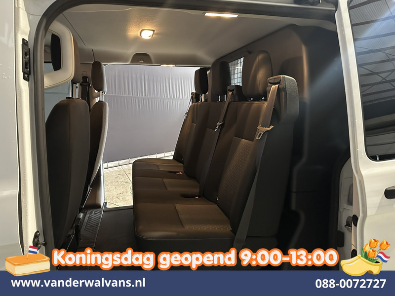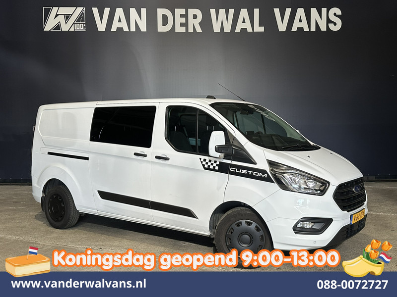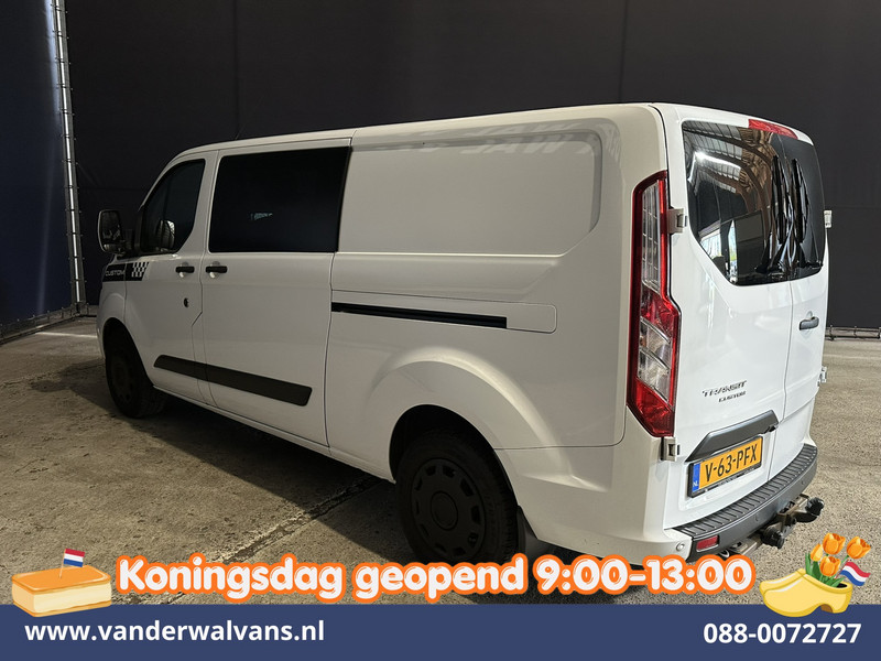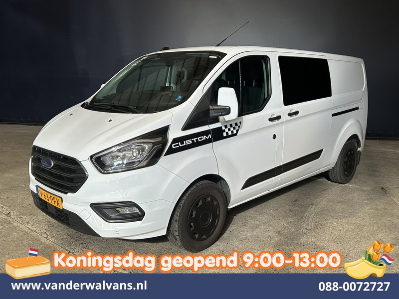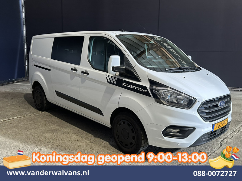 170pk sterke Ford Transit Custom L2H1 Euro6 dubbel cabine met airconditioning, 5 zitplaatsen en dubbele zijdeur. Dealer onderhouden en voorzien van camera, navigatie, Apple Carplay, Android Auto, LED, cruisecontrol, verwarmde voorruit, trekhaak, parkeersensoren en bluetooth telefoonvoorbereiding.