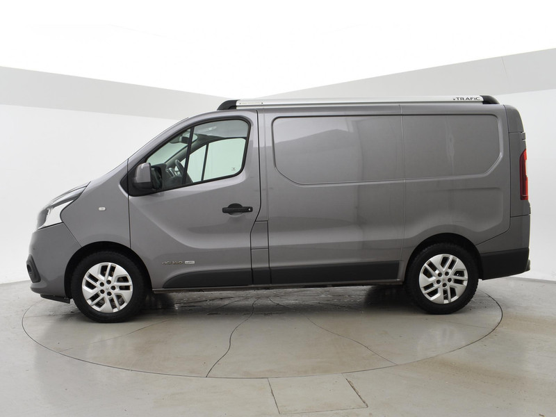 Enkel cabine Trafic 1.6 DCI 140 PK in het donkergrijs metallic met 17 inch lichtmetalen velgen, Touch-screen radio, Achteruitrijcamera, Bluetooth met audiostreaming, Cruise control, Airco, Dakrailing, Mistlampen, 3 zitplaatsen, Prijs is exclusief BTW.