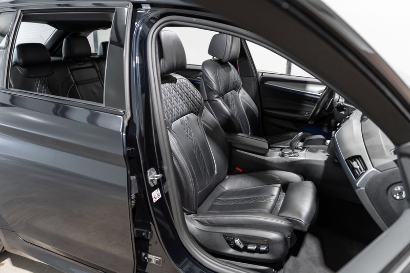 Pragmatisch en veilig als deze auto is, beschikt hij over diverse veiligheidssystemen. In het instrumentarium kunt u bovendien de verkeersborden zien die u onderweg tegenkomt. Zo helpt deze BMW u om veiliger te rijden. Deze BMW 5-serie Touring is ook behulpzaam als het gaat om een rechte koers. Het Lane-keeping systeem signaleert en corrigeert als u onbedoeld de rijstrooklijnen dreigt te overschrijden. Veilig inhalen gaat moeiteloos dankzij actieve dodehoekdetectie. Het veiligheidssysteem waarschuwt als een ander voertuig in uw dode hoek rijdt. De auto is ook uitgerust met head-up display, accident avoidance system, forward collision warning system, hill hold functie, brake assist en bandenspanningcontrolesysteem.