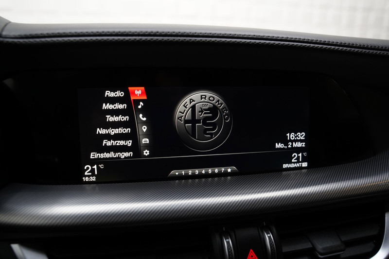 De nieuwste veiligheidssystemen komen in deze Alfa Romeo Stelvio samen. In het instrumentarium laat de verkeersborddetectie de actuele verkeersborden zien. Bij afslaan en inhalen waarschuwt de actieve dodehoekdetectie meteen als er gevaar is vanwege voertuigen buiten uw zichtveld. Bij concentratieverlies van de bestuurder geeft vermoeidheidsherkenning automatisch een waarschuwingssignaal. Dankzij veiligheidsvoorzieningen als front assist, hill hold functie, brake assist en bandenspanningcontrolesysteem, bent u steeds veilig onderweg.