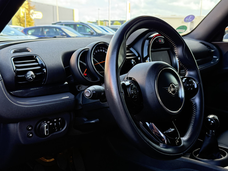 Prettig, altijd weten waar je moet zijn en hoe lang de rit nog duurt met het navigatiesysteem. De achteropkomend verkeer waarschuwing geeft een signaal als degene achter u te dicht op u zit. Ook handig en veilig bij het wisselen van rijbaan. Met de automatische airconditioning selecteert u de gewenste temperatuur. Het systeem doet de rest. Alle audiofuncties zitten onder uw vingertoppen door de audiobediening op het stuur. Parkeerplekken worden er niet ruimer op. Maar met de aanwezige parkeersensoren krijgt u deze MINI Clubman zonder problemen op z'n plaats. De MINI is standaard voorzien van: regensensor, cruise control, keyless entry, isofix-aansluiting, usb-aansluiting en centrale deurvergrendeling met afstandsbediening.