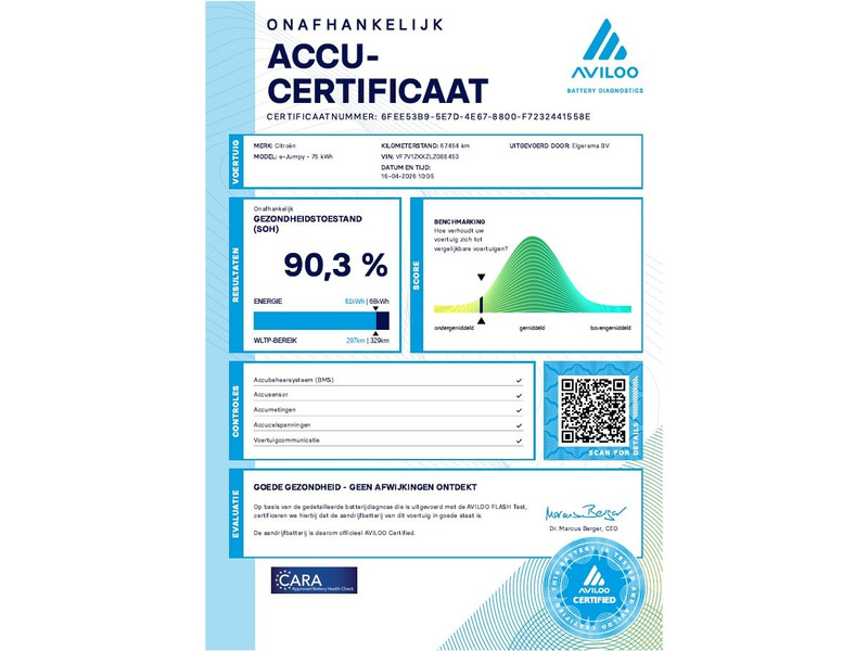 Deze 136pk sterke e-Jumpy met 75kWh is van 01-2021 en heeft slechts 67.000km gereden! State of Health accupakket %. Range WLTP 314km