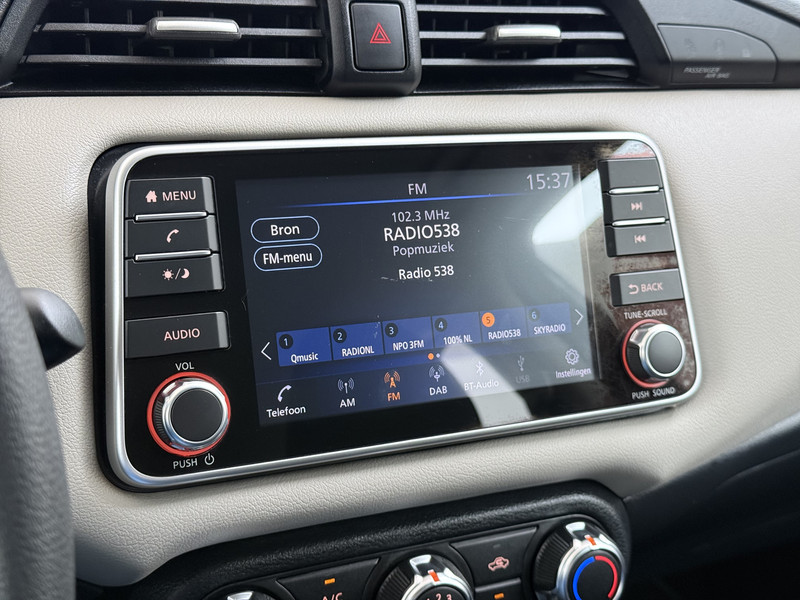 Houdt uw ogen op de weg en uw handen aan het stuur. Het audiosysteem met dab-ontvangst bedient u vanaf het stuurwiel. Radarsensoren aan de achterkant van de auto zorgen voor een achteropkomend verkeer waarschuwing als de afstand tot het verkeer achter te klein wordt. De cruise control levert een mooie, gelijkmatige koers. Dat rijdt prettig. Het hele jaar door zorgt airconditioning voor een prettige temperatuur. Deze Nissan is voorzien van centrale deurvergrendeling met afstandsbediening, boordcomputer en verstelbaar stuur.