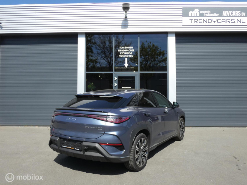 Elektrisch rijden is ontspannen rijden. Achter het stuur van deze Byd SEALION 7 kunt u zich in alle rust concentreren op de weg. We hebben het hier over een auto uit 2025, hij heeft 150 kilometer op de teller staan. Op een volle acculading kan deze auto de gebruikelijke dagelijkse ritten allemaal maken. Het opladen gaat eenvoudig aan een openbare laadpaal of aan uw eigen oplaadpunt thuis. De hoogwaardige, lederen bekleding benadrukt de kwaliteit van deze Byd. In de verwarmbare voorstoelen zitten is elke keer een welkom gevoel. Met een druk op de knop gaat de elektrische achterklep open. Met het grote glazen panoramadak geniet u van maximale lichtinval. Ook de passagiers worden verwend, door de verwarmde achterbank. In deze Byd profiteert u onder andere ook van: 20 inch lichtmetalen velgen, LED koplampen, adaptief dempingsysteem, warmtewerend glas, in delen neerklapbare achterbank en LED-achterlichten.