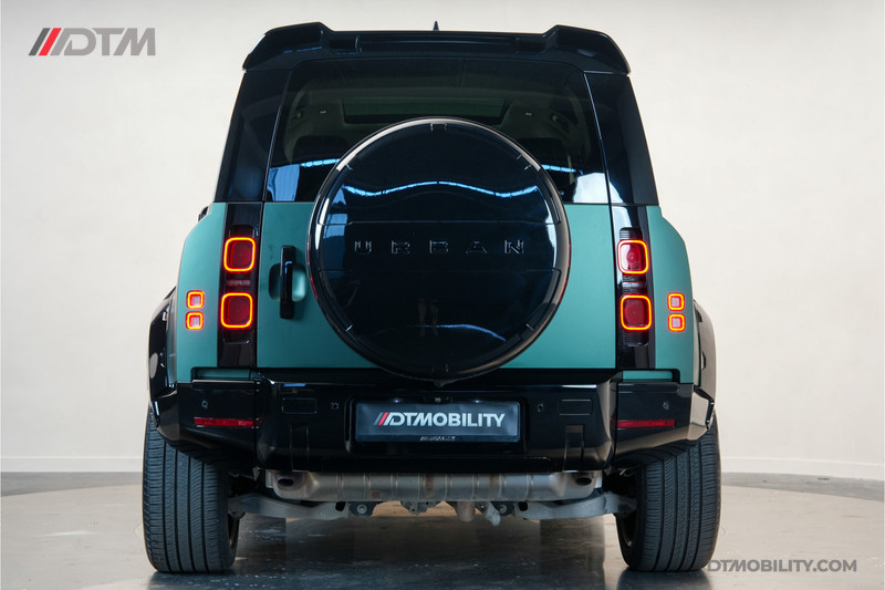 Deze Defender is uitgerust met het prestigieuze Widetrack-pakket van Urban Automotive. Dit is geen standaard accessoirelijst, maar een volledige visuele transformatie die de auto een bredere, agressievere en meer 'bespoke' uitstraling geeft.