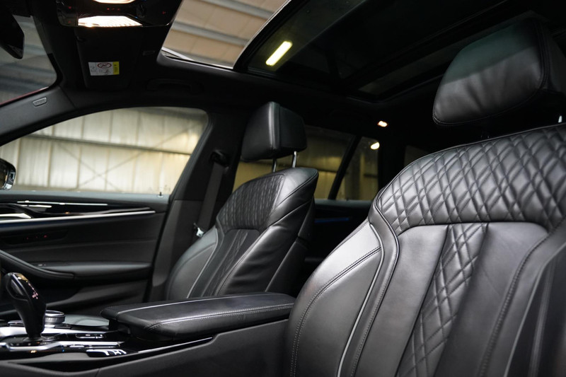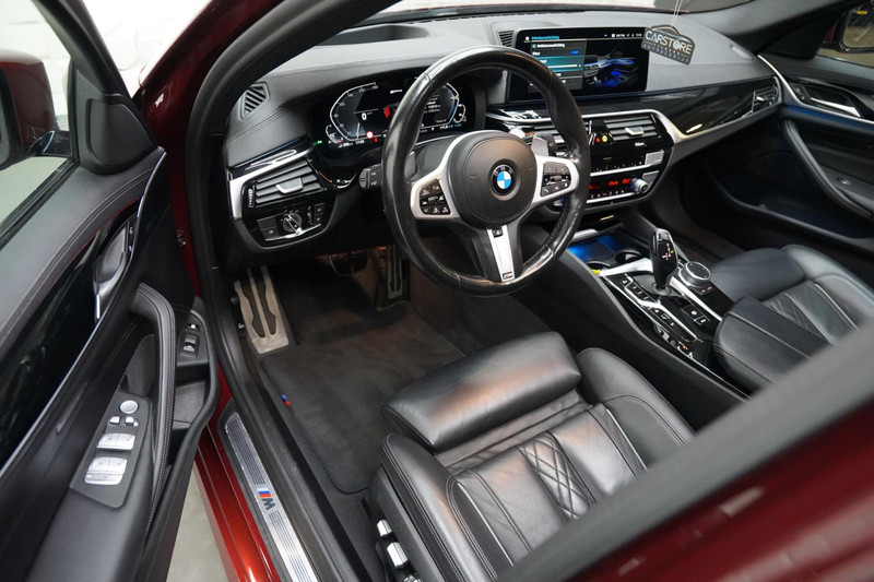 Neem plaats in de cockpit, start de motor en voel het vermogen. Met deze sportieve BMW 5-serie Touring hebt u altijd de controle. Een viercilinder motor en een automatische transmissie zorgen voor de uitstekende prestaties van deze auto. We nemen u in gedachten even mee. Stop uw bagage moeiteloos achterin dankzij de elektrisch bediende achterklep, neem plaats achter het stuur en zie meteen het luxe lederen interieur. Even het elektrisch bediende glazen panorama dak open en rijden maar! U past de stoelen moeiteloos aan, ze zijn elektrisch in te stellen en hebben bovendien een geheugen. Natuurlijk behoren 19 inch lichtmetalen velgen, LED koplampen, sportonderstel, extra getint glas, in delen neerklapbare achterbank en verstelbare lendensteunen ook tot de uitrusting van deze complete auto.