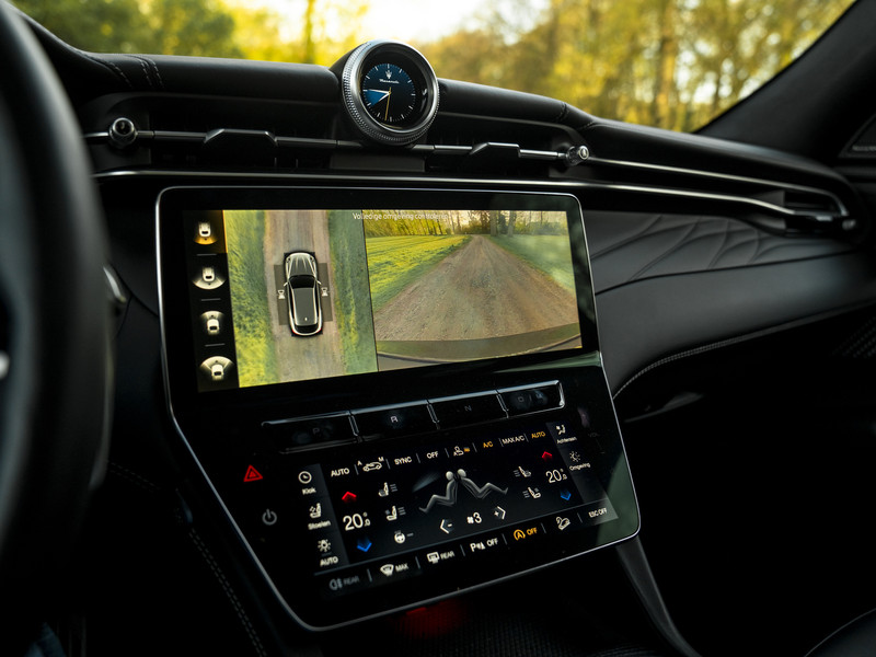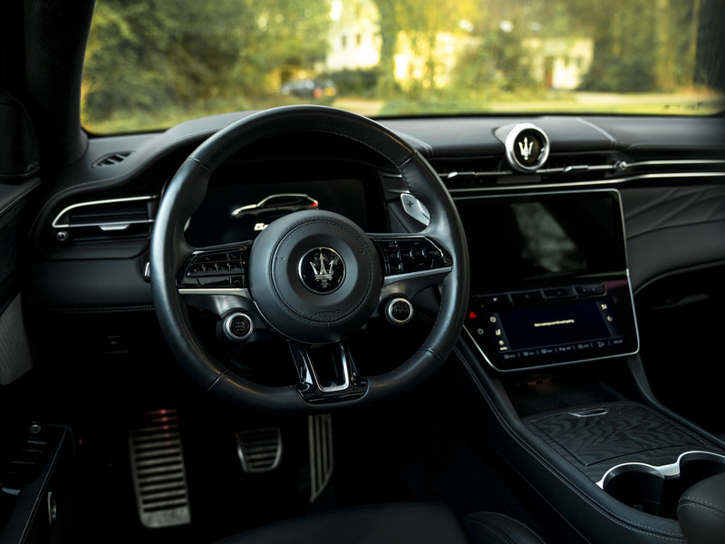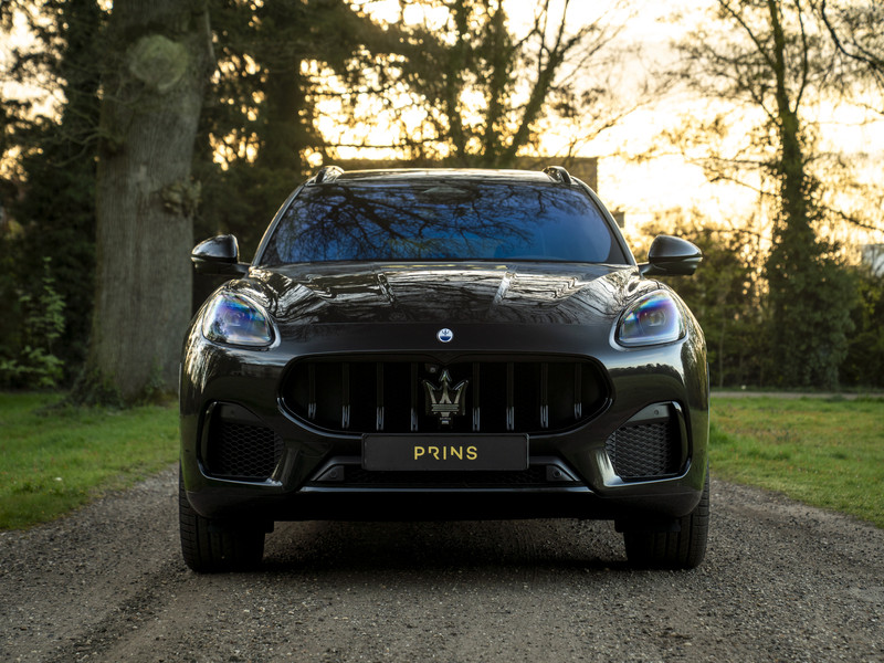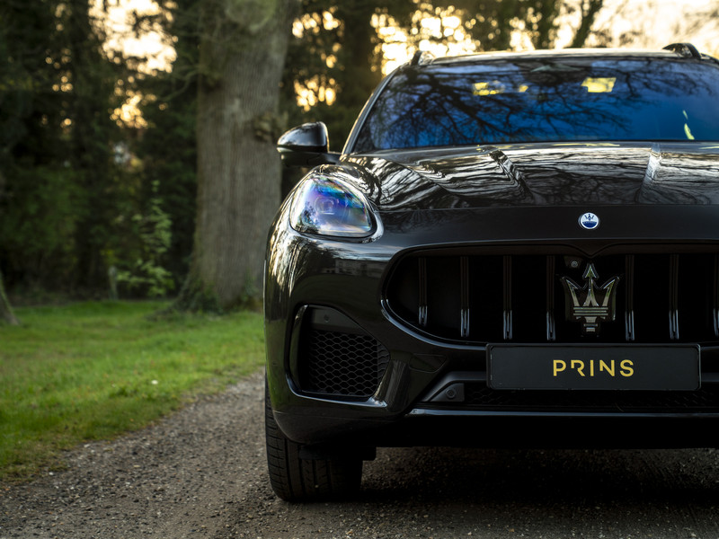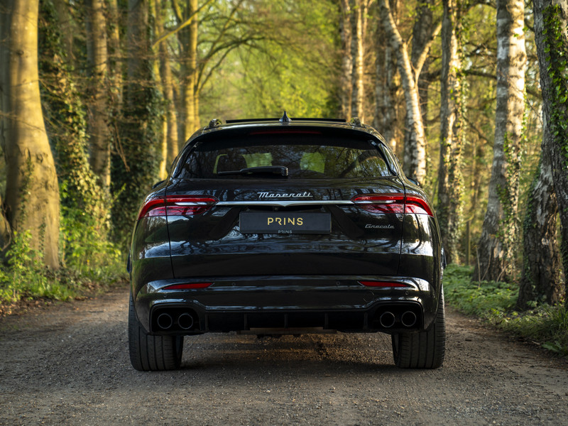 Nieuw binnen: schitterende Grecale Modena 330pk in het Nero Tempesta met luxe als panoramadak, Sonus Faber audio, stoelverwarming en ventilatie, 360 camera etc.