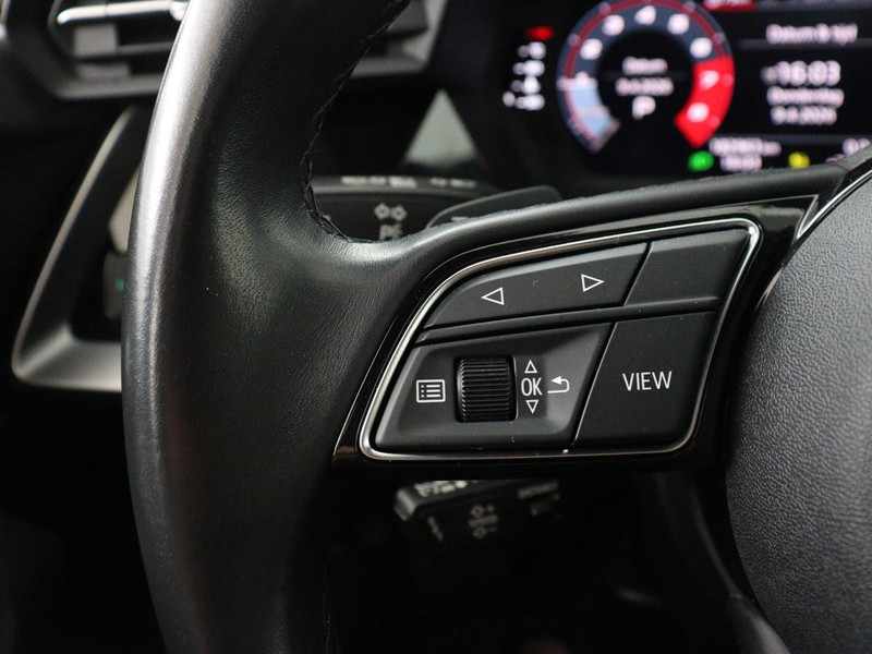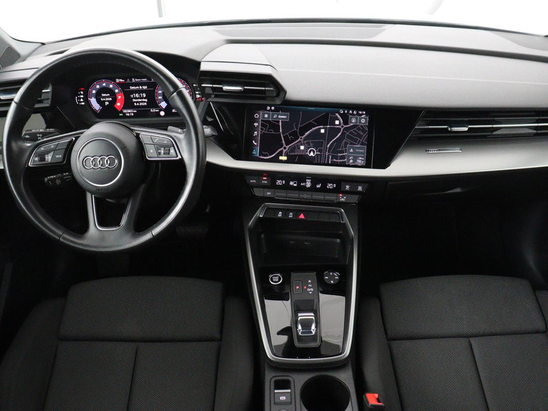 Neem plaats in de cockpit, start de motor en voel het vermogen. Met deze sportieve Audi A3 hebt u altijd de controle. In deze auto vindt u een benzinemotor en een automatische transmissie. Mooi om te zien en heerlijk om in te zitten zijn de sportstoelen, die u onderweg optimale ondersteuning geven. U wordt in deze auto ook getrakteerd op 18 inch lichtmetalen velgen, Full LED koplampen, dakspoiler, in delen neerklapbare achterbank, LED-achterlichten en verwarmde ruitensproeiers.