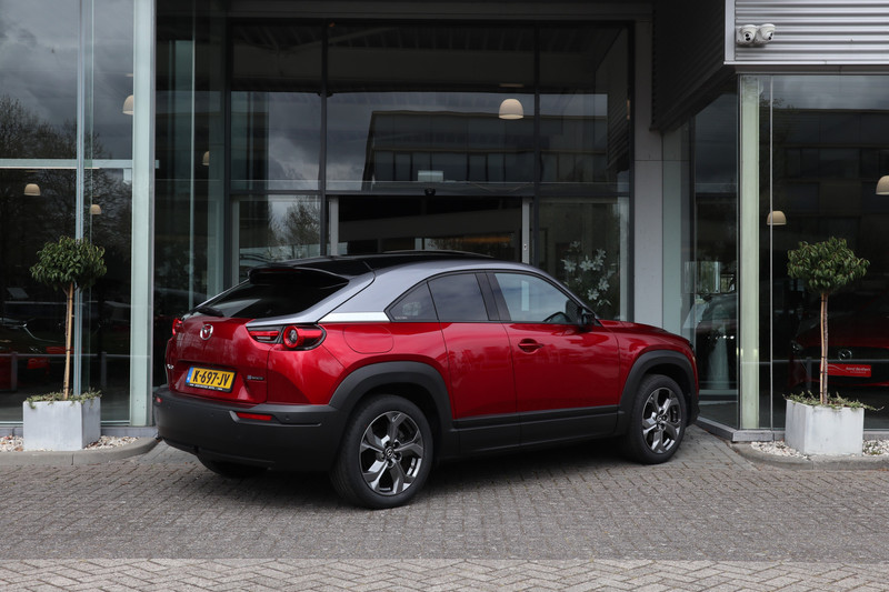 Deze Mazda MX-30 e-Skyactiv EV 145 Luxury Modern is een stijlvolle en innovatieve volledig elektrische SUV met een luxe uitstraling, moderne technologie en een hoogwaardige afwerking. Een perfecte combinatie van comfort, design en duurzaamheid.