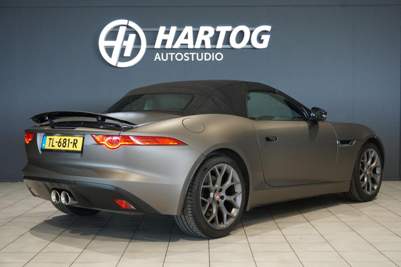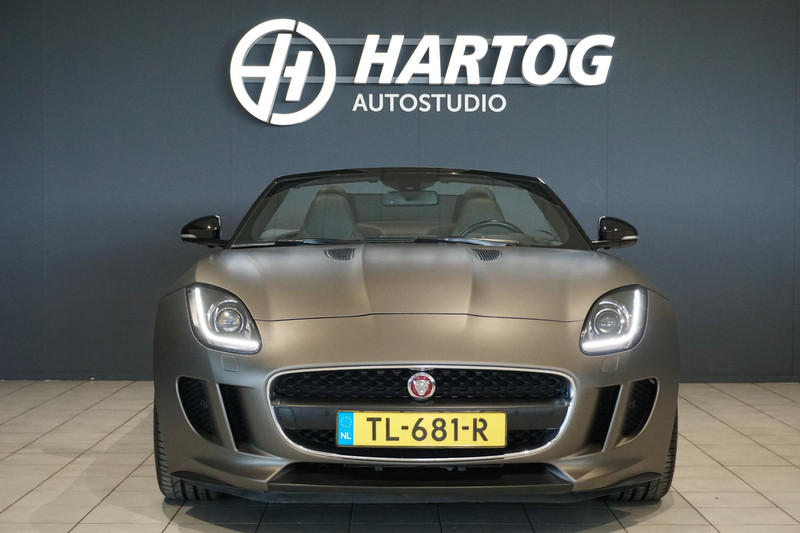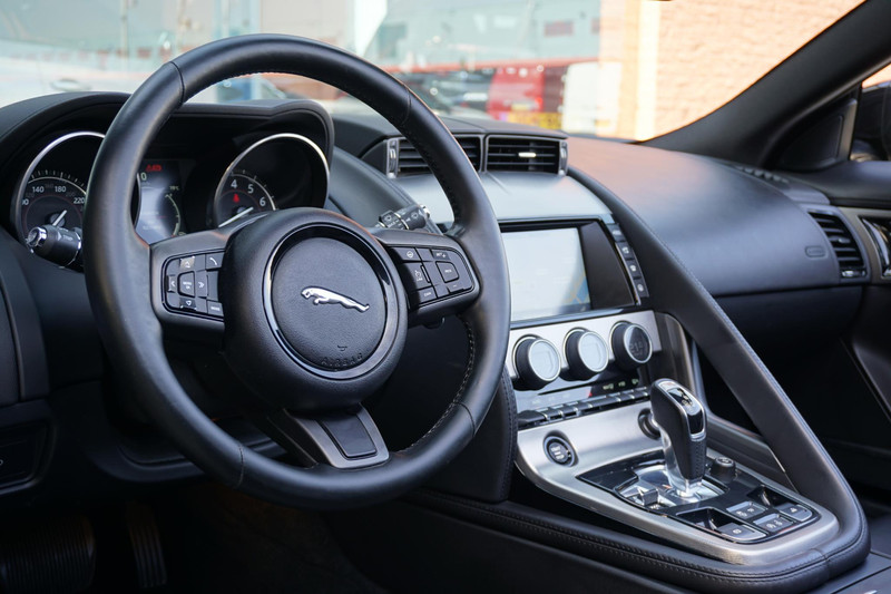 Jaguar F-type, Een 3 liter V6 met een supercharger die zorgt voor 340PK, Stoelverwarming, Stuurwielverwarming, Dodehoekdetectie, Keyless entry + start, Elektrische stoelverstelling met memory (beide stoelen + stuurwiel), Navigatie + Bluetooth koppeling, Achteruitrijcamera, Parkeersensoren voor + achter, Verstelbare achterspoiler, Verstelbare uitlaat, Cruise control, Climate control,