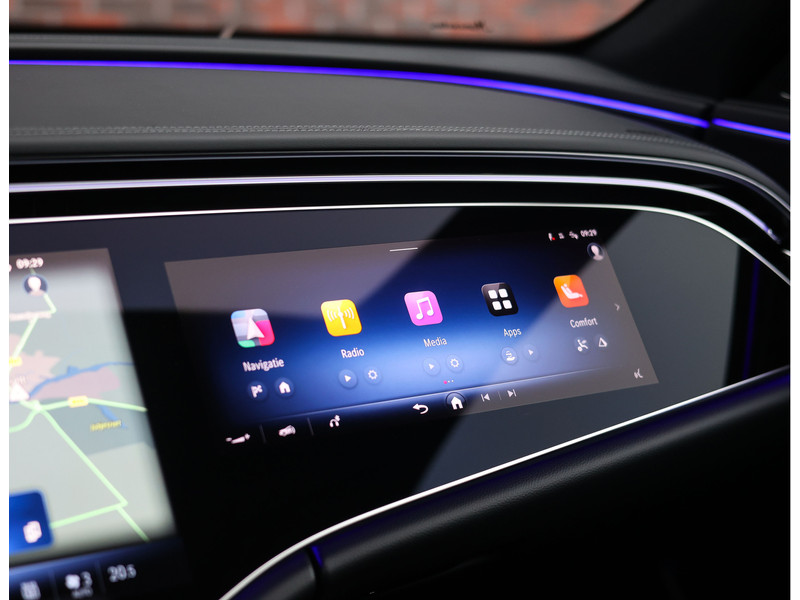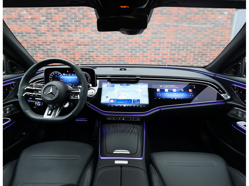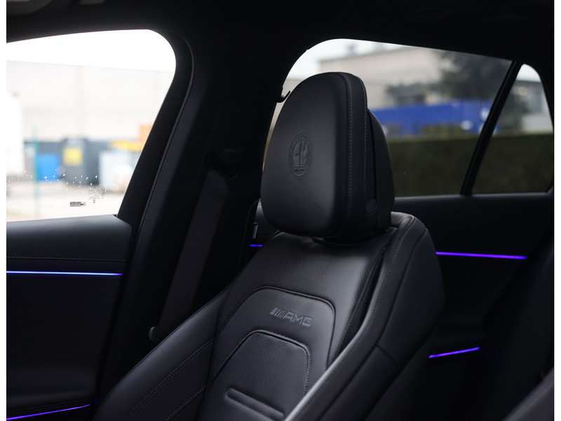 Binnenin vindt u een luxueuze omgeving waarin elk detail klopt. Het zwarte nappaleder op de stoelen en het dashboard, de hoogwaardige houtafwerking en de sfeerverlichting creëren een ambiance die u zowel overdag als ’s avonds weet te verrassen. Voorstoelen met verwarming en ventilatie, verwarmde achterstoelen en een verwarmd AMG stuurwiel zorgen ervoor dat u altijd in comfort onderweg bent. Daarnaast geniet u optimaal van uw favoriete muziek met het Burmester geluidssysteem en heeft uw passagier een eigen display voor vermaak onderweg.