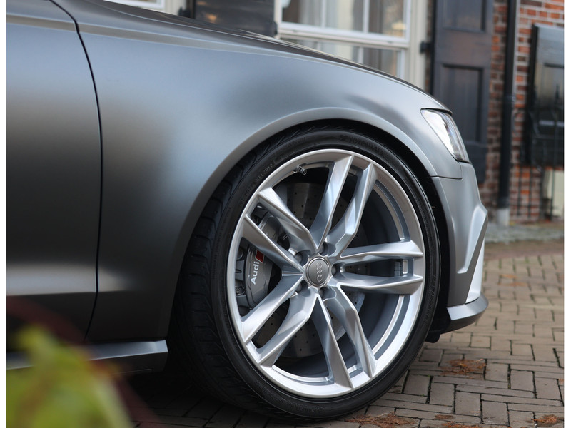 We durven wel te stellen dat de vorige eigenaar een zeer goede smaak heeft. Bij het samenstellen van deze auto is aan alle details gedacht waardoor het geheel buitengewoon bijzonder is! Deze RS6 Avant is uitgevoerd in Matte Daytona grijs wat de auto prachtig staat. De scherpe lijnen van de RS6 van deze generatie komen zeer goed tot hun recht door de matte afwerking. Daarnaast is er niet gekozen voor zwarte details zoals vaak het geval is. Nee, dit exemplaar heeft alle exterieurdetails in matte aluminium, een perfecte combinatie met het lakwerk! De spiegelkappen, raamlijsten en bumperlijsten, zelfs de velgen zijn niet zwart uitgevoerd. Pure klasse!