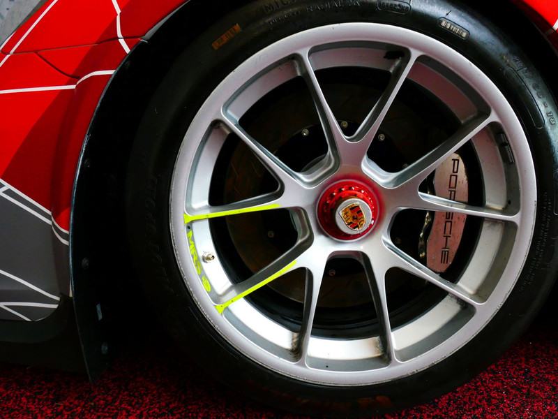Rear axle Single-piece centre-lock alloy wheels conforming to Porsche specification and design, 12 J x 18 ET 53; Treaded Michelin transportation tyres; tyre size: 31/71-18