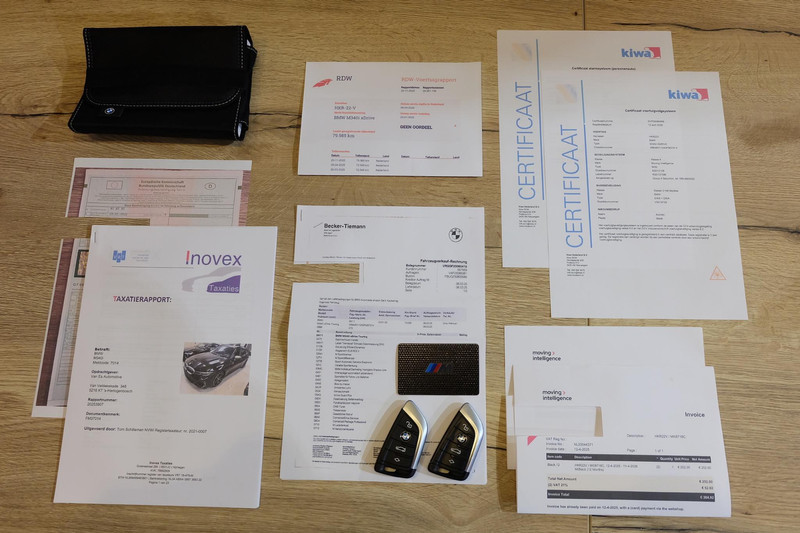 Onder de auto liggen momenteel 'Goodyear Eagle F1 Asymmetric 3' zomerbanden met rondom 5,5 millimeter profieldiepte. De laatste onderhoudsbeurt is door BMW-merkdealer Autohaus Becker - Tiemann Bielefeld GmbH&Co. KG in Bielefeld uitgevoerd op 12-08-2024 bij de 61.911 kilometer. Dit was een grote onderhoudsbeurt inclusief de bougies en alle filters. Het onderhoud is uiteraard volledig geregistreerd bij BMW. Óók zijn het NAP-rapport, het Duitse kentekenbewijs, het taxatierapport voor de rest-bpm bij invoer én de alarmcertificaten aanwezig.