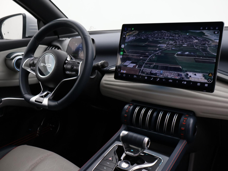BYD / Build Your Dreams Atto 3 in de meest luxe Design uitvoering met het grootste 15,6 inch touch-screen multimediascherm die zowel horizontaal als verticaal gebruikt kan worden, BTW verrekenbaar, Origineel Nederlandse auto van 06-2024 met slechts 29.511 km, Panorama schuif/kanteldak, 18 inch lichtmetalen velgen, Blauw met wit Eco Leder interieur met rode accenten, Vehicle To Load functie waarbij de auto als oplader gebruikt kan worden voor kleine elektronische apparaten tijden kamperen bijvoorbeeld, Elektrische achterklep, Stoelverwarming, 360 graden surround view camerasysteem, Elektrische stoelverstelling, Warmtepomp, Adaptive cruise control, Apple Carplay / Android Auto appstreaming Google Maps, Flitsmeisters, Whatsapp, Spotify etc, Privacy glass, Climate control, Sfeerverlichting interieur met verschillende kleuren, Keyless-entry en keyless-drive, Skiing White parelmoer exterieurkleur, DAB+ digitale radio, Draadloze telefoonlader, Leder stuurwiel, Zwarte hemelbekleding.