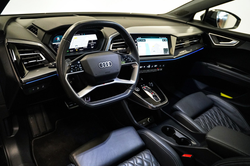 Een full option uitgevoerde Audi Q4 e-tron 50 quattro afkomstig van de Audi dealer en dealeronderhouden! De Audi heeft o.a. het S-Line pakket, 21 inch, matrix led, de geweldige vol lederen supersportstoelen met diamant sticksel, Sonos audio, panorama dak, adaptive cruise control, sfeerverlichting, head up display, side assist, camera en navigatie plus!