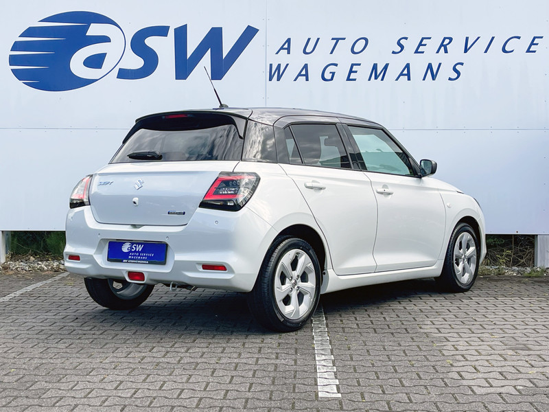 Alles vrij achter? De achteruitrijcamera laat het meteen zien. Adaptive cruise control houdt de ingestelde snelheid vast en houdt afstand tot het voertuig voor u. Deze Suzuki Swift is 'connected'. Belangrijke functies worden permanent gemeten en zijn uit te lezen via een speciale app, ook op afstand. Prettig, altijd weten waar je moet zijn en hoe lang de rit nog duurt met het full map navigatiesysteem. Ook over uw schouder ziet u onderweg niet alles wat er aan de achterzijde gebeurt. Daarom heeft deze Suzuki Swift een achteropkomend verkeer waarschuwing. Ook is de Suzuki uitgerust met: DAB ontvangst, keyless entry, airconditioning, lederen stuur, usb-aansluiting en bagage afdekhoes.