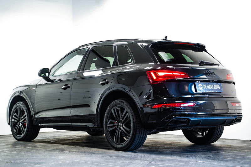 Opnieuw een fraaie Audi Q5 (facelift model) 50e hybrid afkomstig van de Audi dealer met o.a. het S-Line pakket, zwart optiek, 20 inch (zwart), matrix led, half lederen sportstoelen (S-Line), adaptive cruise control, side assist, apple car play, stoelverwarming, camera, sfeerverlichting en een elektrische klep.
