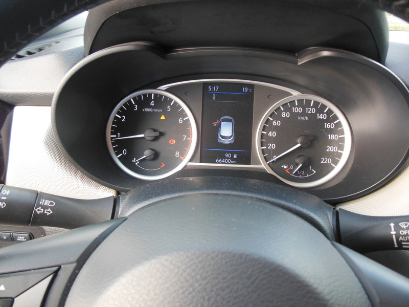 In deze Micra vindt u schakelaars op het stuur om het audiosysteem met dab-ontvangst te bedienen. Ja, airconditioning is er natuurlijk ook in deze auto. Ook over uw schouder ziet u onderweg niet alles wat er aan de achterzijde gebeurt. Daarom heeft deze Nissan Micra een achteropkomend verkeer waarschuwing. Parkeersensoren zijn een handig hulpmiddel om parkeerschades te voorkomen. De cruise control heeft een feilloos geheugen. Als u even vaart heeft geminderd, bent u na één klik weer op de oude snelheid. Ook verstelbaar stuur, boordcomputer en centrale deurvergrendeling met afstandsbediening zijn aan boord.