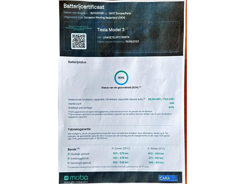Actieradius (volgens fabrikant) 547 KM -