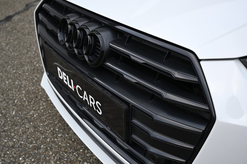 Een auto waar de kleuren Parelmoer wit en zwart mooi samen komen door het black optiek pakket origineel van Audi.
