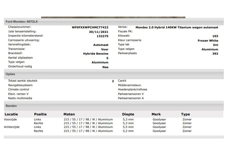 Het kan echter voorkomen dat uit de automatische voertuiginformatie een optie of accessoire naar voren komt die helaas toch niet op de auto aanwezig is.