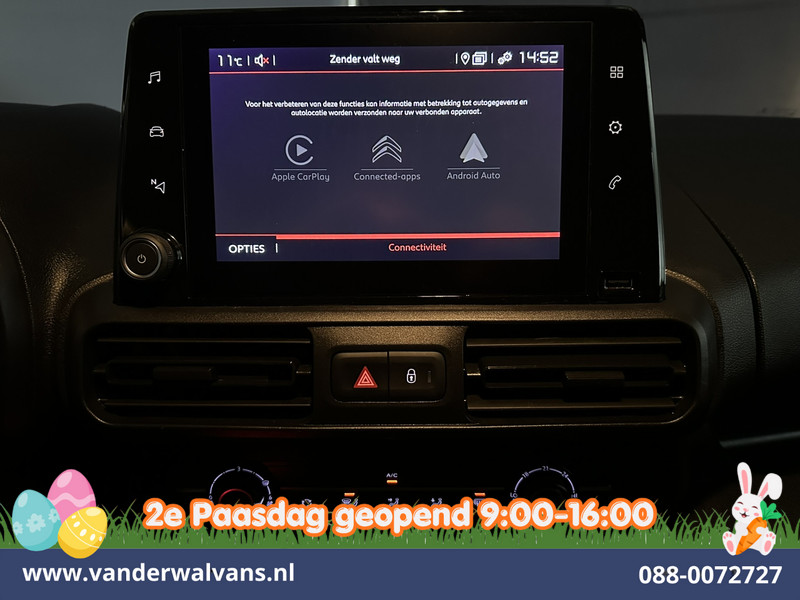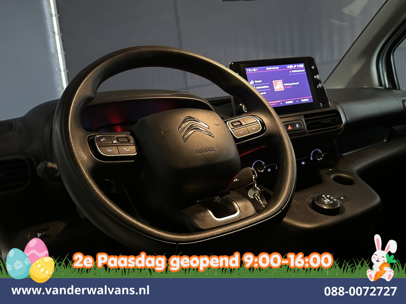 130pk sterke Citroën Berlingo Automaat met *benzine* motor L1H1 Euro6, inrichting en camera. Deze bestelauto is uitgevoerd met airconditioning, navigatie, Apple Carplay, Android Auto, cruisecontrol, parkeersensoren en bluetooth telefoonvoorbereiding.
