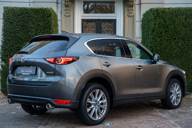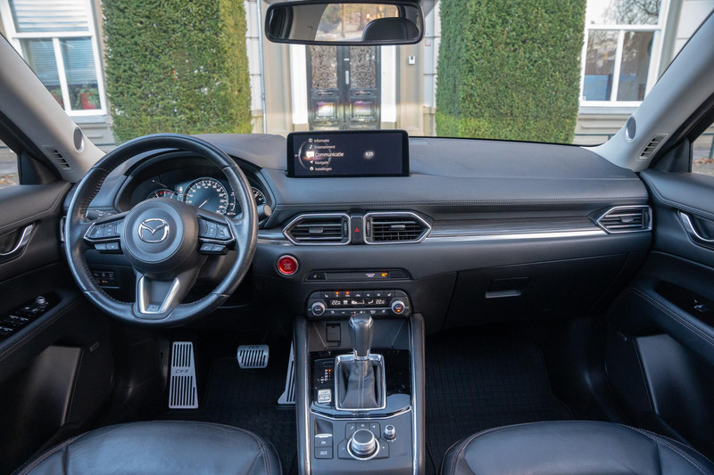 Zeer nette Mazda CX-5 2.5 SkyActiv-G 194 Signature. Deze auto is uitgevoerd in Machine Grey Metallic, dit samen met de 19 inch lichtmetalen velgen maakt dit tot een zeer knappe auto. Daarbij is deze auto ook uitgevoerd als Signature, dit wil zeggen dat het de meest luxe en uitgebreide uitvoering is. tot de uitrusting behoort onder andere navigatie, adaptive Cruise control, parkeersensoren voor en achter, 360 Camera, stoelverwarming en -ventilatie, stuur verwarming, achterbankverwarming, schuif/kanteldak, elektrische achterklep, lederen bekleding, elektrisch verstelbare stoelen met geheugenfunctie, Apple Carplay/Android Auto en nog veel meer.
