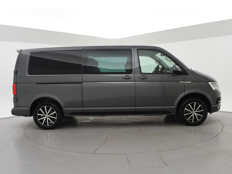 Transporter dubbel cabine lang L2H1 2.0 TDI 150 PK DSG Automaat in het Indium Grey metallic met zwart volledig leder T-Edition interieur, Highline uitvoering, Comfortstoelen met armleuningen links en rechts, 5 zitplaatsen, Full LED koplampen, Bumpers en buitenspiegels in carrosseriekleur, Lichtmetalen velgen, Adaptive cruise control, Elektronisch verwarmde voorruit, Trekhaak met 2500 kg trekgewicht op kenteken, Achteruitrijcamera, Apple Carplay / Android Auto appstreaming Google Maps, Flitsmeister, Whatsapp, Spotify etc, Privacy glass, 2 achterdeuren, Achterspoiler, Parkeersensoren, Airco, Mistlampen, Navigatie touch-screen origineel Volkswagen, DAB+ Digitale radio, Afsluitbaar dashboardkastje. Prijs is exclusief BTW.
