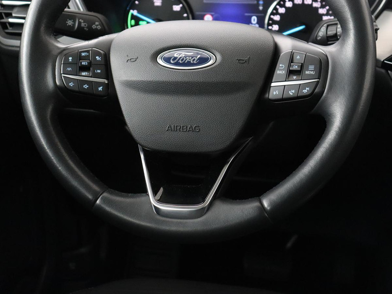 Het eigentijdse interieur wordt natuurlijk helemaal volmaakt met het digitale dashboard. Een handige optie is de achteruitrijcamera. Achteruitrijden, inparkeren en manoeuvreren gaat gemakkelijker dan ooit. Als u de adaptive cruise control inschakelt, regelt de auto zelf de snelheid en de afstand tot de auto voor u. Zoals u van zo'n jonge auto mag verwachten, zijn hier ook de geavanceerde remote services aanwezig. Simpelweg met een app op uw smartphone controleert u op afstand de status van de auto en bedient u diverse functies. De bediening van het audiosysteem en het full map navigatiesysteem gebeurt met knoppen op het stuur en als u wilt zelfs met uw stem. De audio is overigens voorzien van DAB-radio voor een altijd heldere ontvangst. Deze Ford is voorzien van automatische airconditioning, draadloos opladen, regensensor, keyless entry, automatisch dimmende binnenspiegel en boordcomputer.