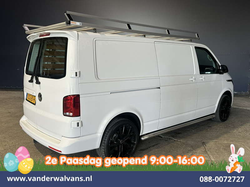 Volkswagen Transporter R line L2H1 Euro6 met lederen bekleding en lichtmetalen velgen. Geheel dealer onderhouden en uitgevoerd met airconditioning, camera, imperiaal, Apple Carplay, Android Auto, sidebars, bijrijdersbank en bluetooth telefoonvoorbereiding.