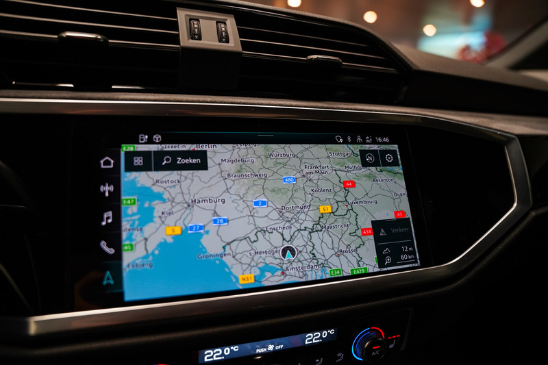 Een bloedmooie Audi Q3 45e S-Line afkomstig van de Audi dealer met o.a. matrix led, 20 inch, zwart optiek, leder/alcantara sportstoelen, een zwenkbare trekhaak, adaptive cruise control, een 360* rondomzicht camera, sfeerverlichting en een elektrische klep!