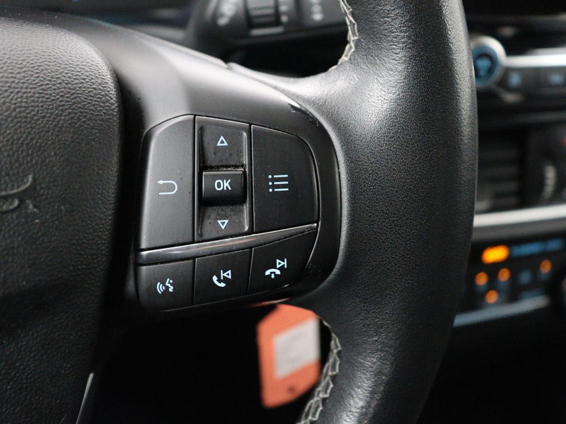 Communiceren met uw auto? Dat gaat via remote services. Met uw smartphone maakt u waar dan ook contact om allerlei functies te checken of te activeren. Deze Ford is voorzien van spraakbediening voor het audiosysteem met DAB-ontvangst. Maar u kunt ook de knoppen op het stuur gebruiken. Het comfort wordt verhoogd door de aanwezige automatische airconditioning. Met de hulp van de parkeersensoren kost inparkeren en uitparkeren u geen enkele moeite. De elektronische systemen in deze Ford helpen u actief om comfortabeler te rijden. Een automatisch inschakelbare verlichting en een regensensor houden de omstandigheden onderweg in de gaten. Ook cruise control, automatisch dimmende binnenspiegel, lederen stuur, centrale deurvergrendeling met afstandsbediening en boordcomputer zijn aan boord.